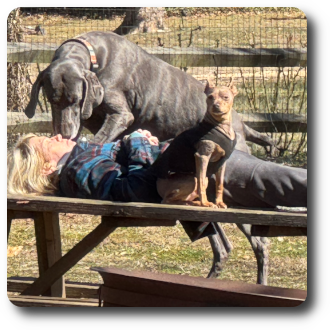 Gig's story began on the day her humans moved back to Winston-Salem. Since then, she's been the ultimate sidekick, a furry shadow, and a constant source of amusement. She's the kind of companion who makes every day an adventure, even if that adventure is just chasing a lacrosse ball.